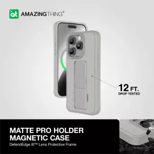 كفر ايفون 15 برو موديل مات برو مع مسكه باللون الرمادي من Amazingthing