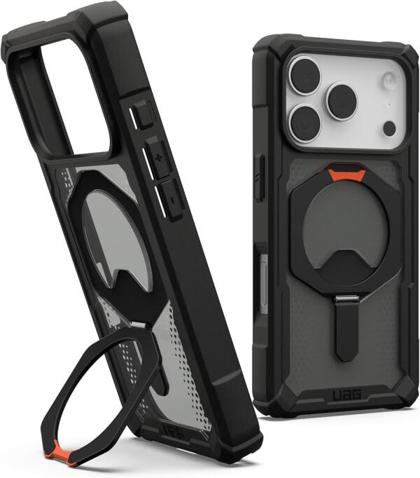 URBAN ARMOR GEAR UAG Designed for iPhone 17 Pro Case with Kickstand Plasma XTE – Compatible with MagSafe Transparent Military Grade Protective Cover, Black/Pop Orange