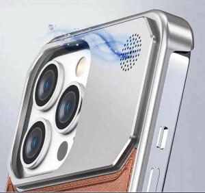 كفر من سبائك التيتانيوم مع خلفيه من الجلد الطبيعي بالاضافه الى فتحه صغيره للعطر ( فواحه ) / يدعم الماك سيف و مضاط للخدش