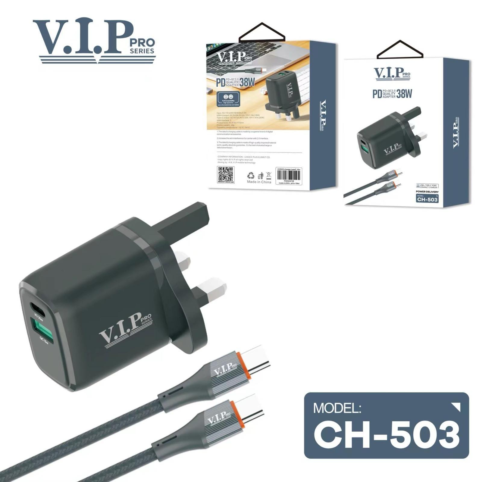 بلاك شاحن منفذ تايب سي+ منفذ يو اس بي + كيبل شحن تايب سي – تايب سي VIP